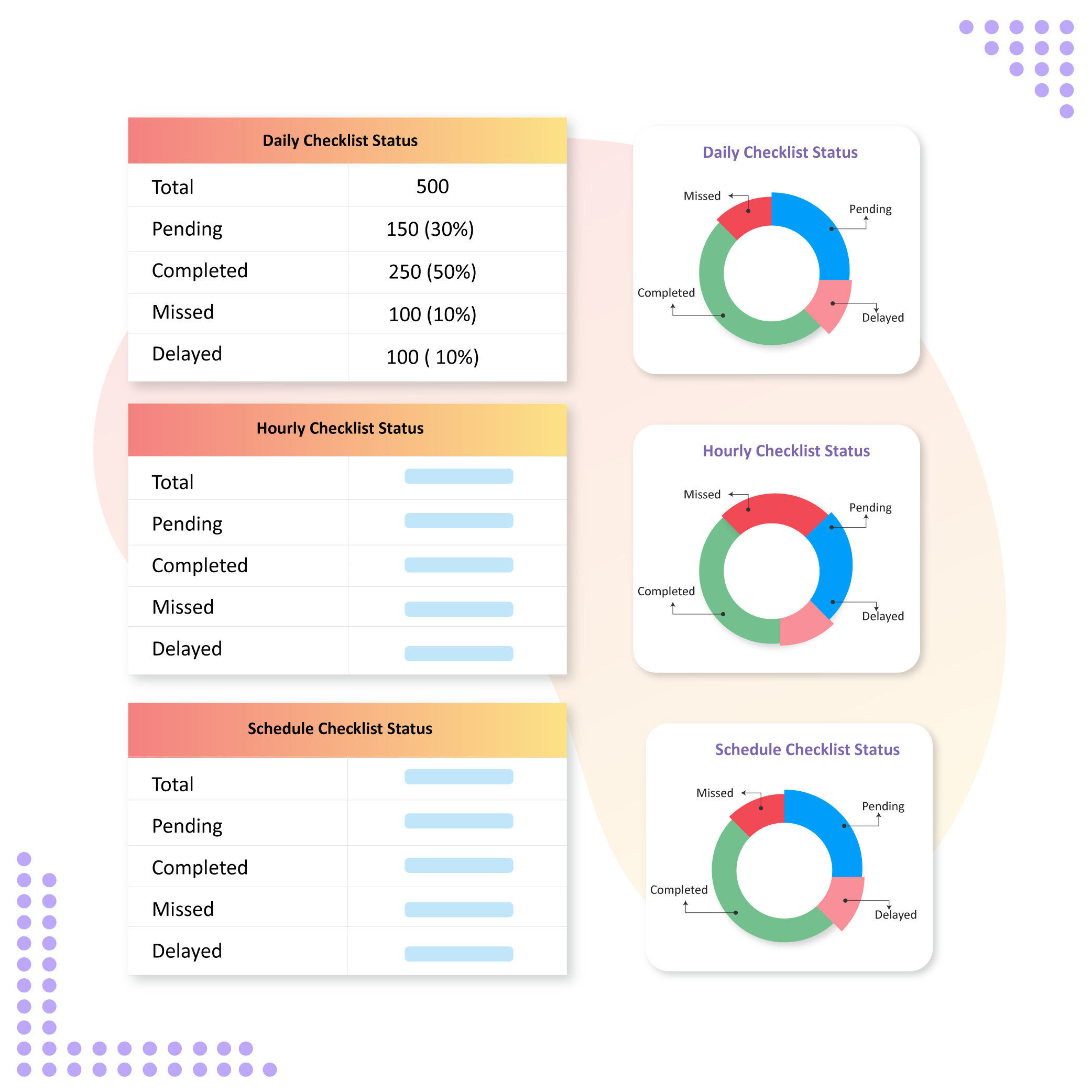 All checklists can be time locked, to ensure timely logging of data. Combination of this feature along with geo-fencing also ensures 100% efficiency of logging data perfectly. The in-charge can also track the efficiency & performance log of their team based on timely completion of checklists.