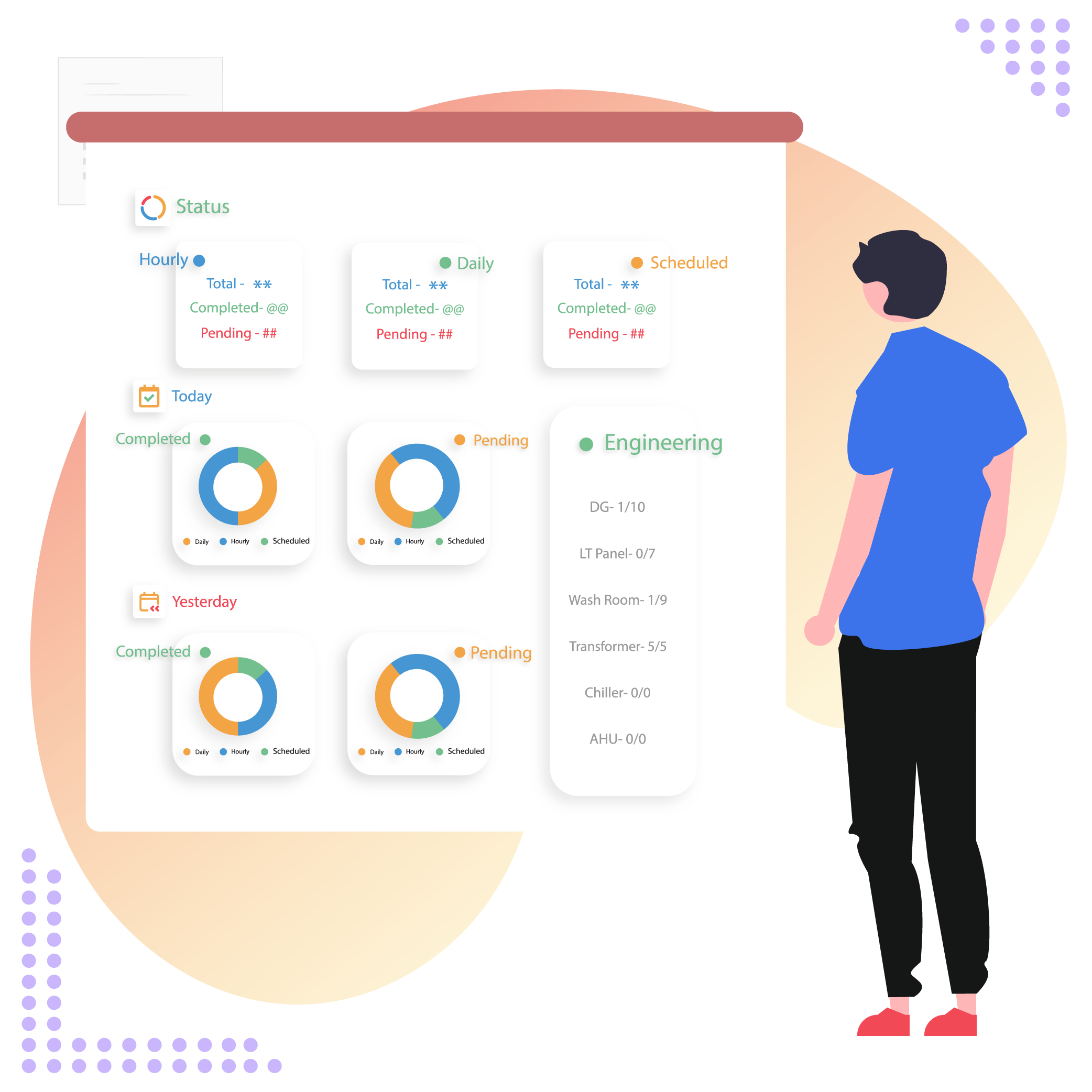 Facility in-charge can track checklist status (cycle of approval), delayed checklists and missed checklists. He can also get relevant & important deviation/performance email notifications. Important DigiLog (MEP/HK) reports can be pulled out in MS Excel & PDF formats from the SmartCheck platform for your assets & activities. The SmartCheck platform also helps you to analyse, acquire & control important facility related operational information.