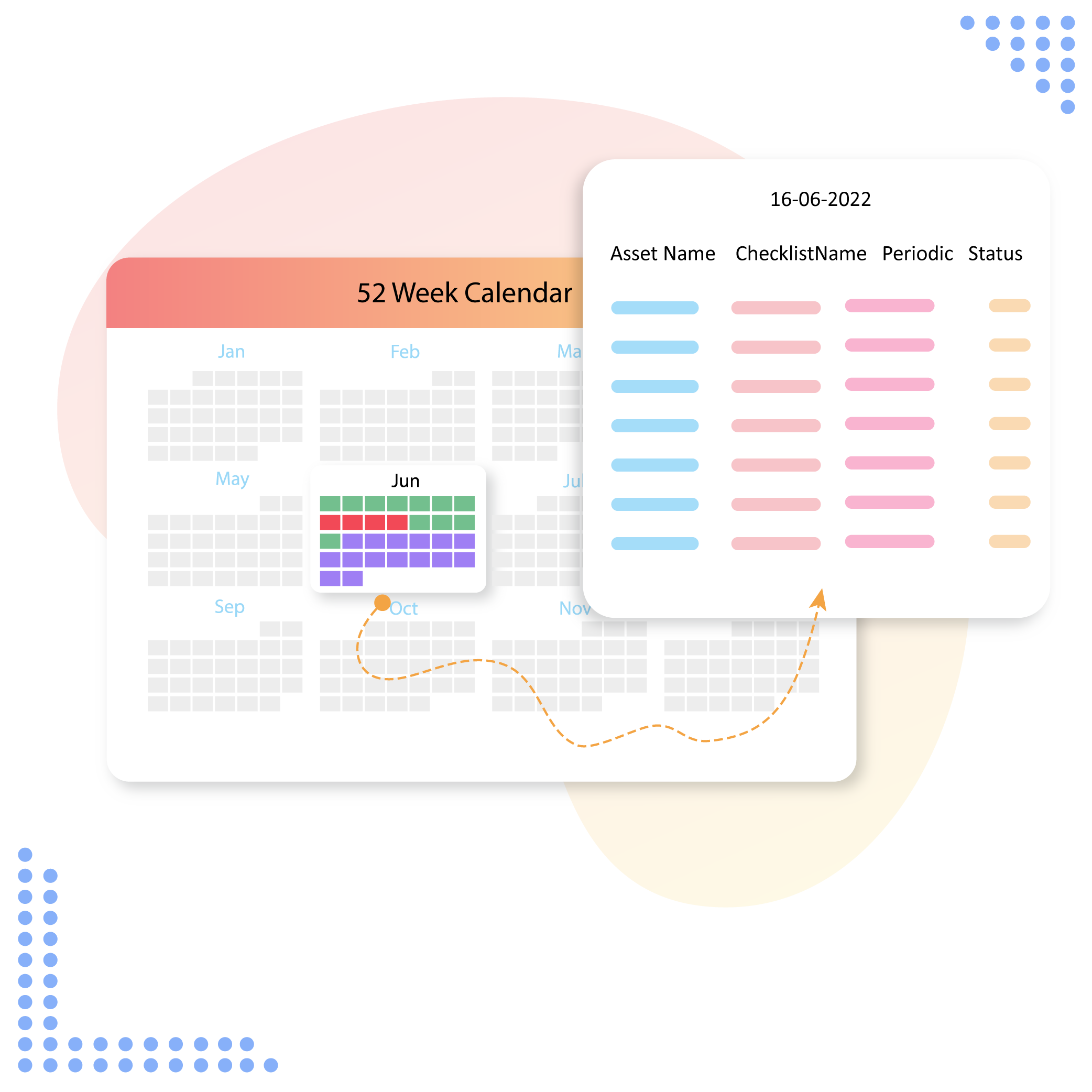 Important asset related planned and preventive maintenances through our 52-Week calendar capture feature, helps you to plan your maintenances, reduce costly asset downtimes, schedule your future maintenance calendar, and implement reactive maintenance strategies.