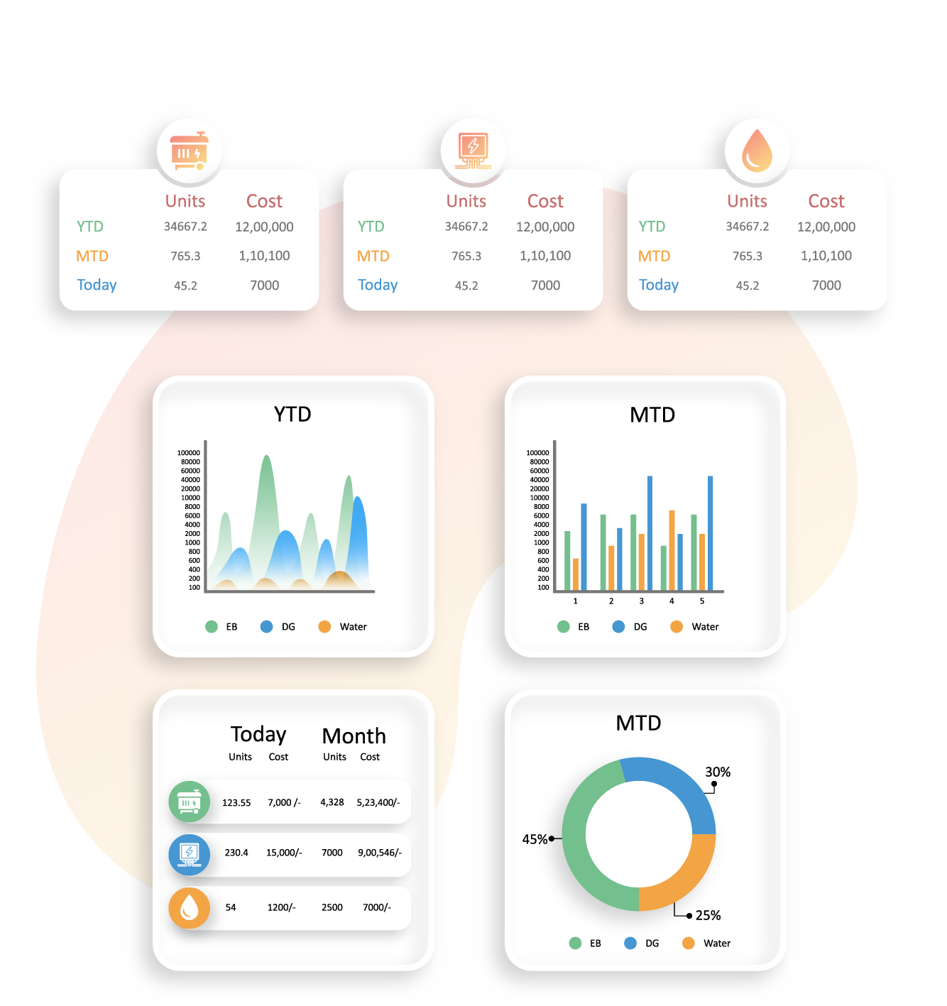 Remove the guess work from your Utilities. Our intuitive utilities dashboard gives real-time and historic analysis enabling you to manage your energy use, water consumption, carbon footprint and drive Cost Savings. No more bill to bill analysis.
